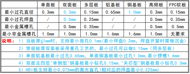 ■除过孔外的插件孔,孔壁有铜或无铜,最小孔做0.5mm(少于这个值可能会喷锡堵孔或油墨堵孔,若有更小插件孔请备注好并做沉金)