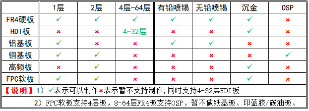 ■暂不制作纸基板、印蓝胶\碳油、裸铜等系统无选项的特殊工艺(8-64层支持OSP工艺)