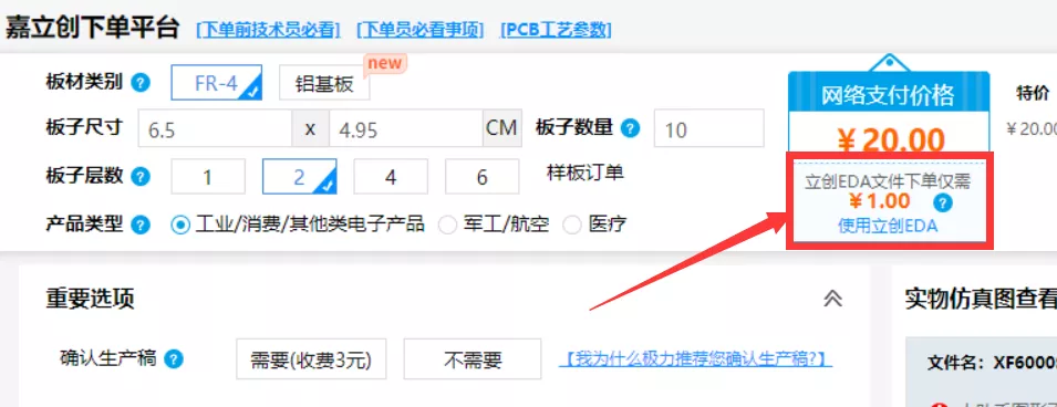温馨提示:在嘉立创EDA导出Gerber后,用嘉立创小助手下单才能享受此优惠服务!