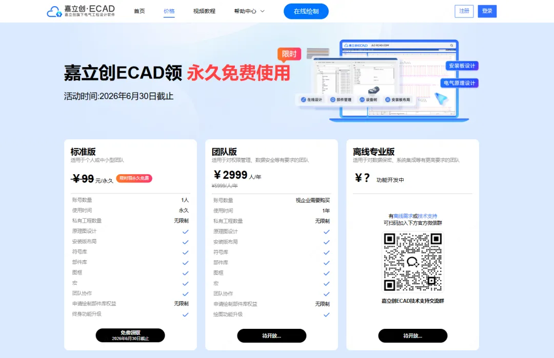 嘉立创免费工业软件库,又添一重要成员:ECAD电气设计软件,今天正式发布,同时开放限时领取标准版【永久免费使用权】(文末有领取方式)。