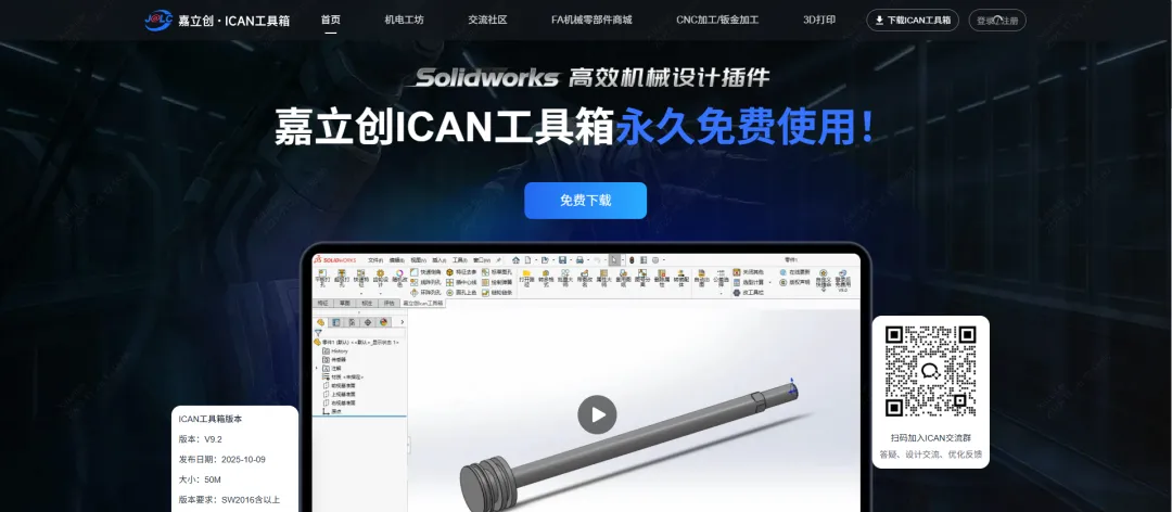 有面向机械工程师的高效辅助设计软件:嘉立创ICAN工具箱(SolidWorks插件),重资收购后还免费退还原付费老用户数百万费用,助力机械工程师提效。