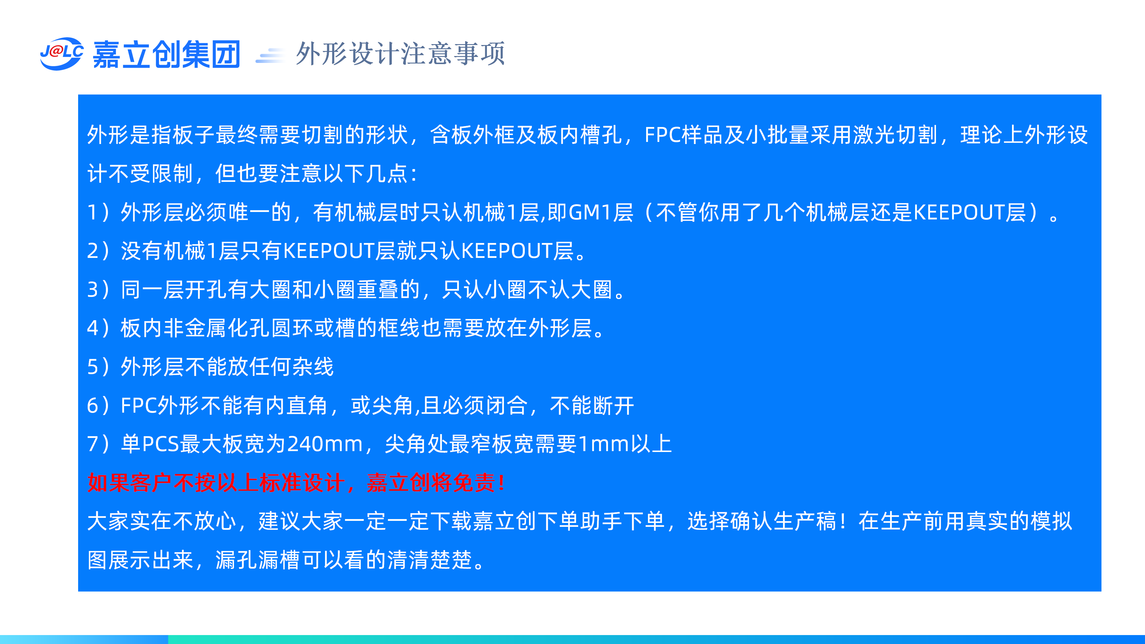 5)外形层不能放任何杂线